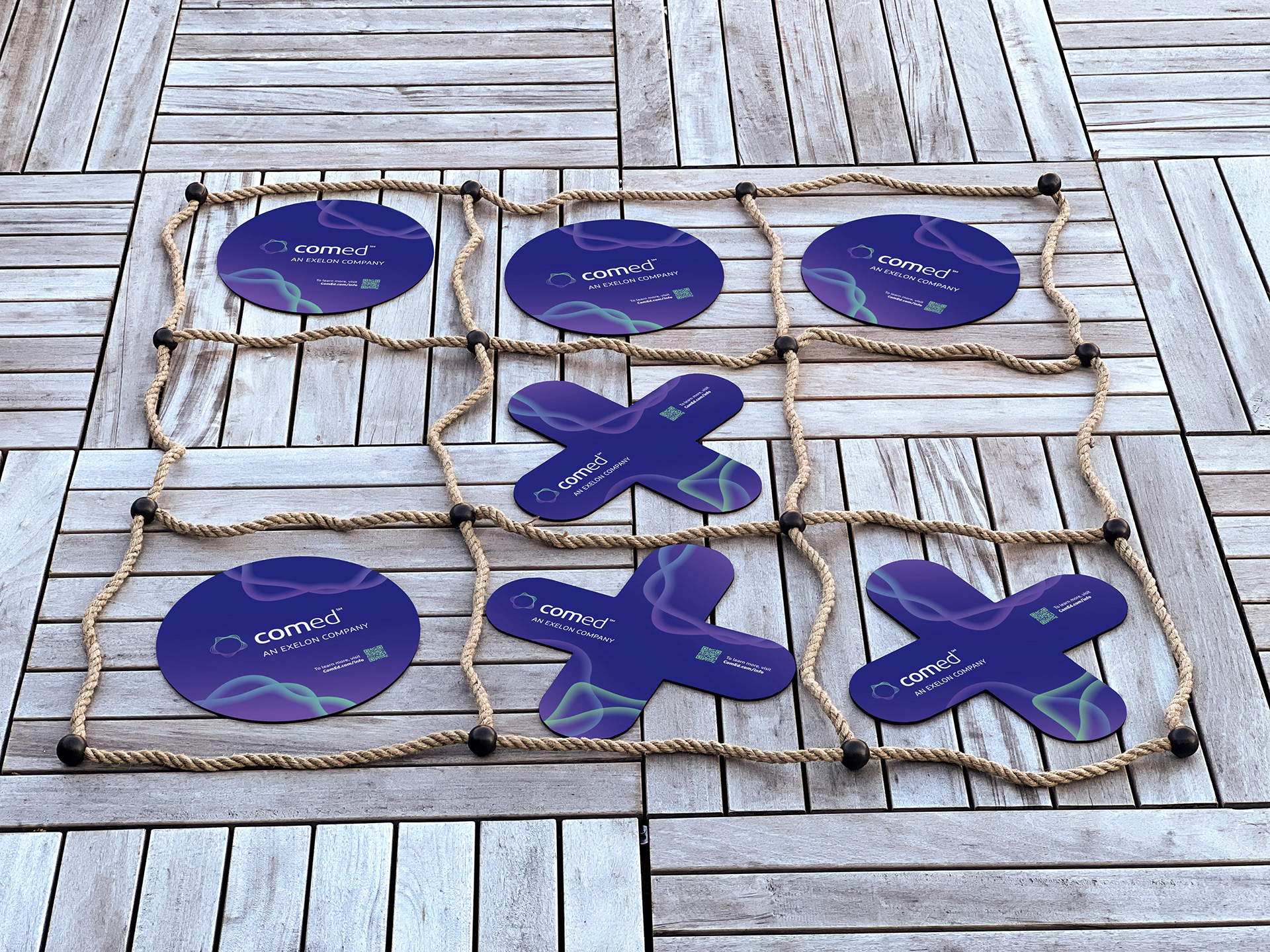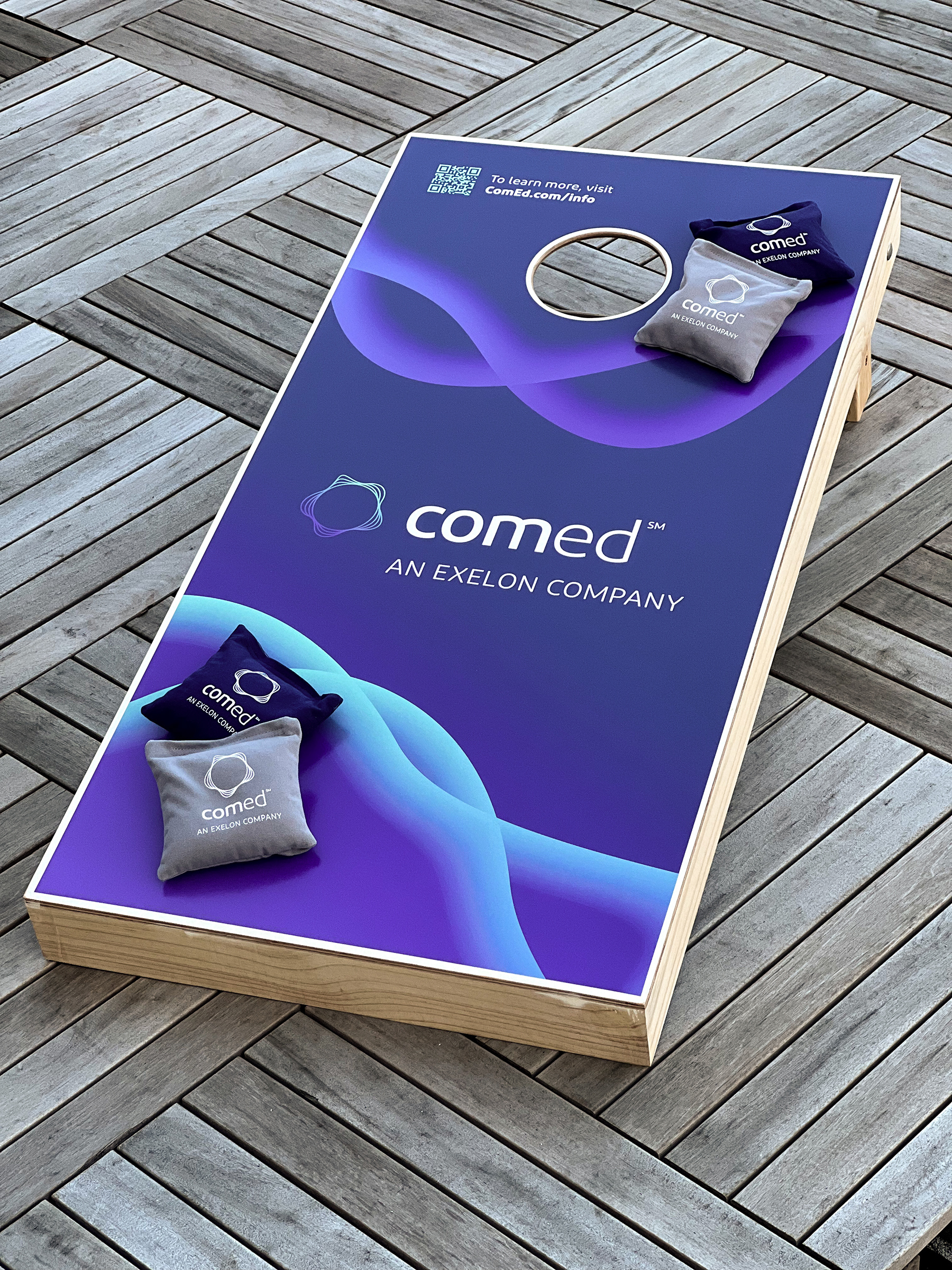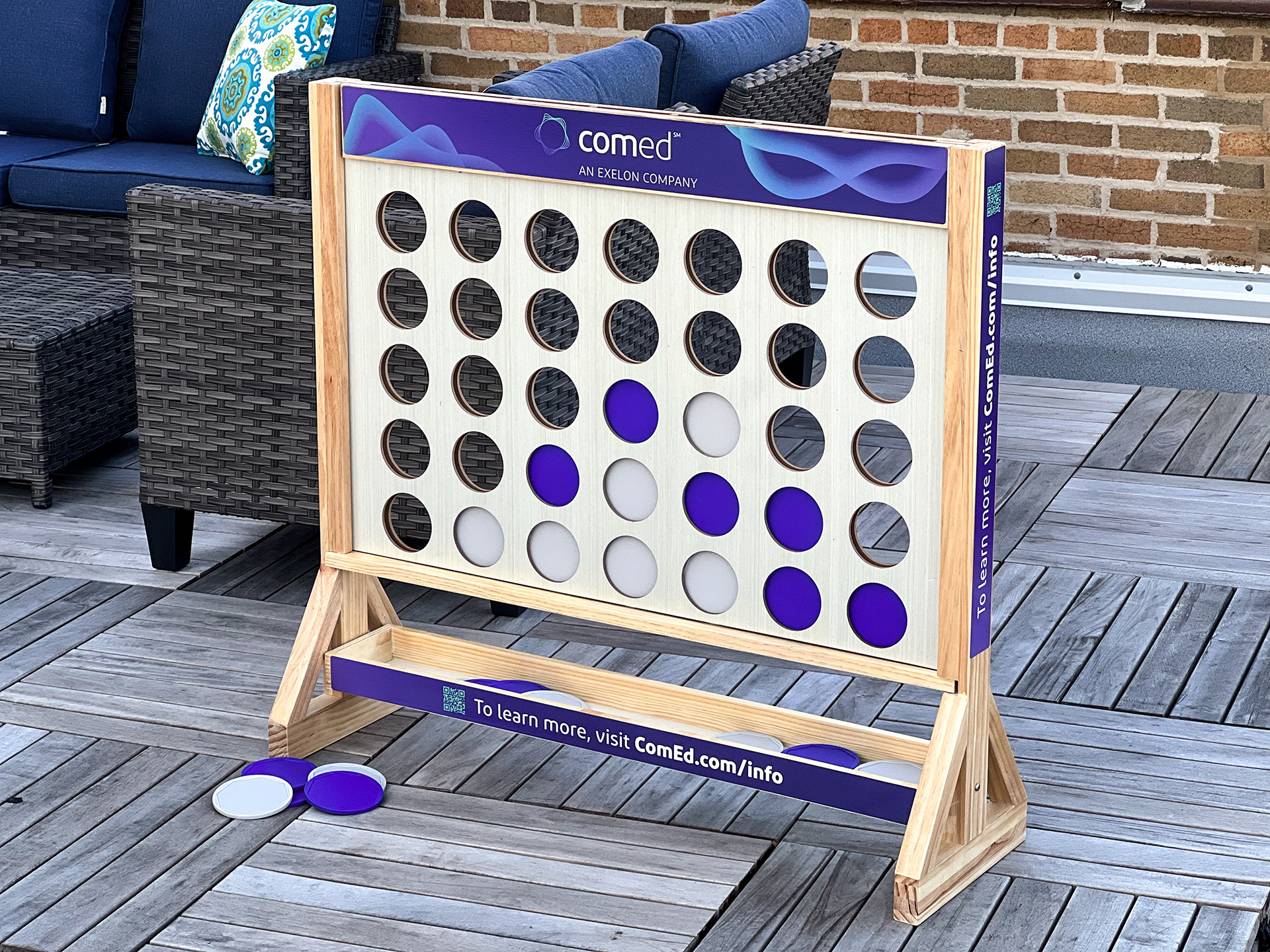 The new branding was well received at Switch on Summer and Jak was contacted shortly thereafter to find games that could be used at future events. The Jak Premiums team sourced the oversized tic-tac-toe, cornhole, and connect four games, and I created the art that would be used for each.