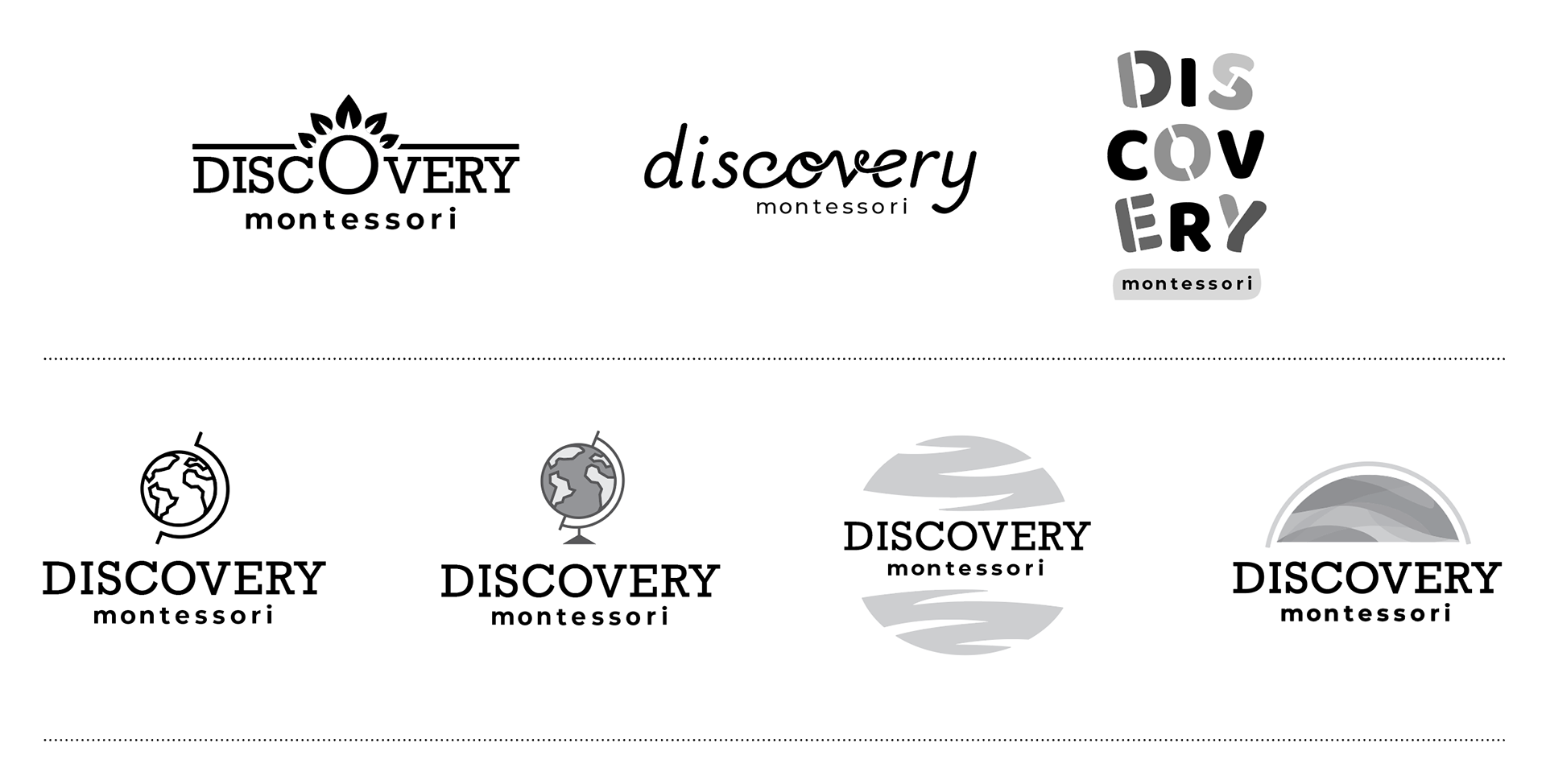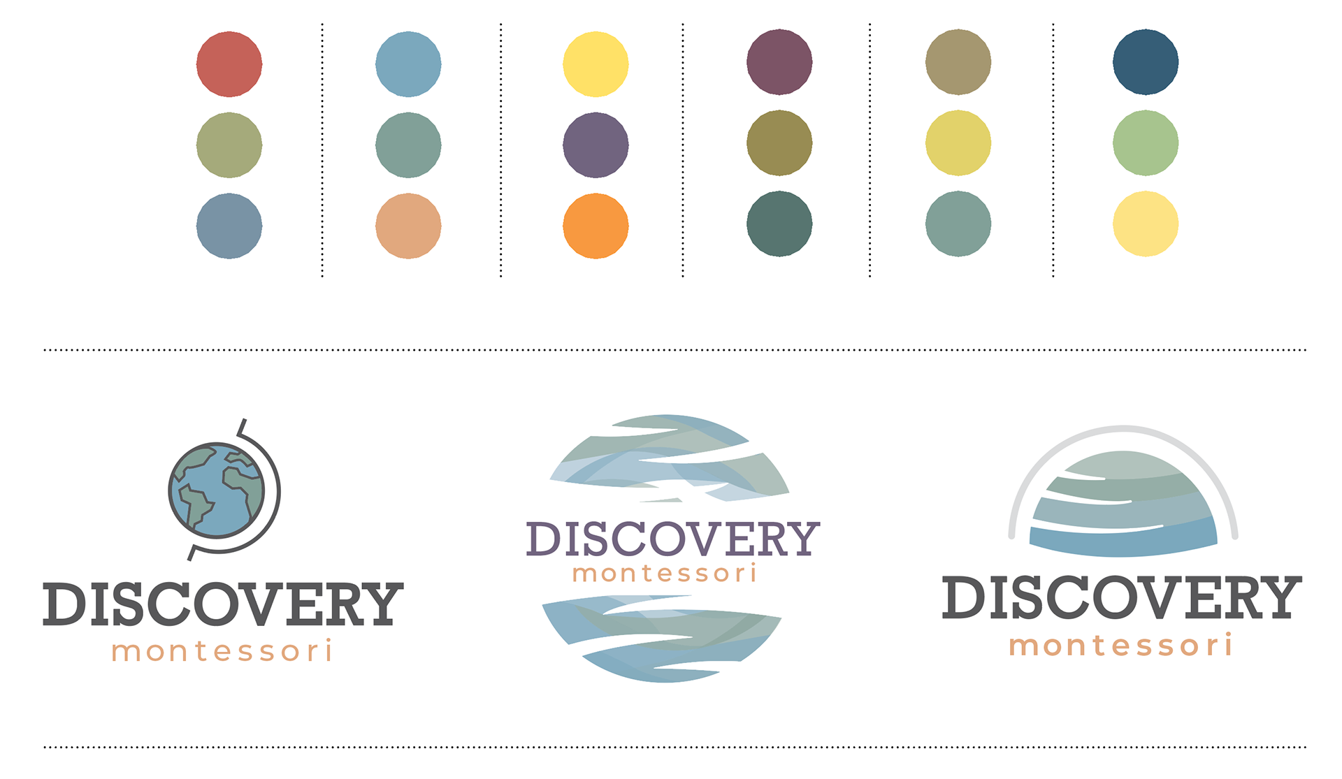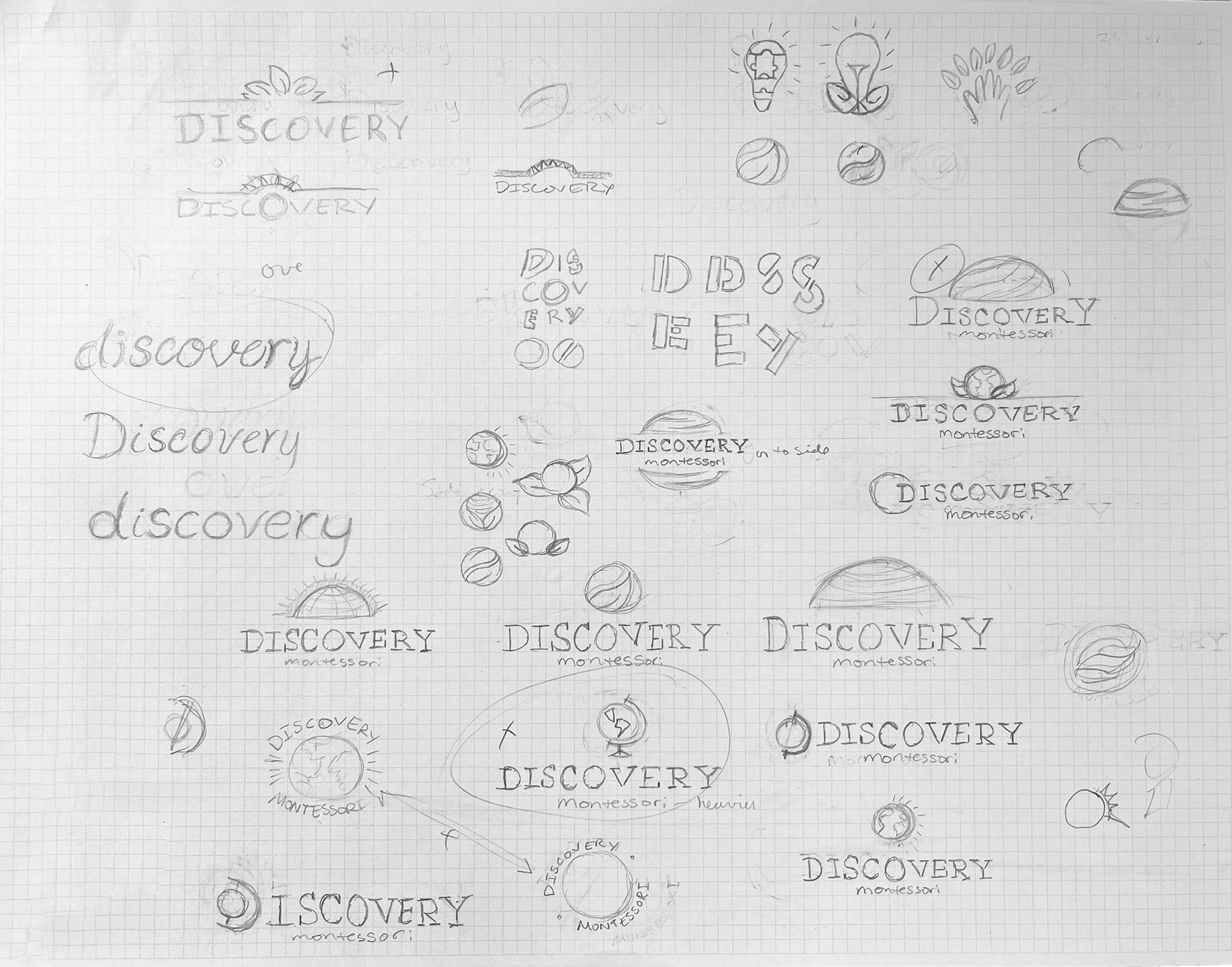 inspired by building blocks. In the second round, more emphasis was placed on the “the world of discovery”. I explored literal and abstract representations of a spherical and globe shapes, and paired them with a typeface that the client liked from the previous round of logos.