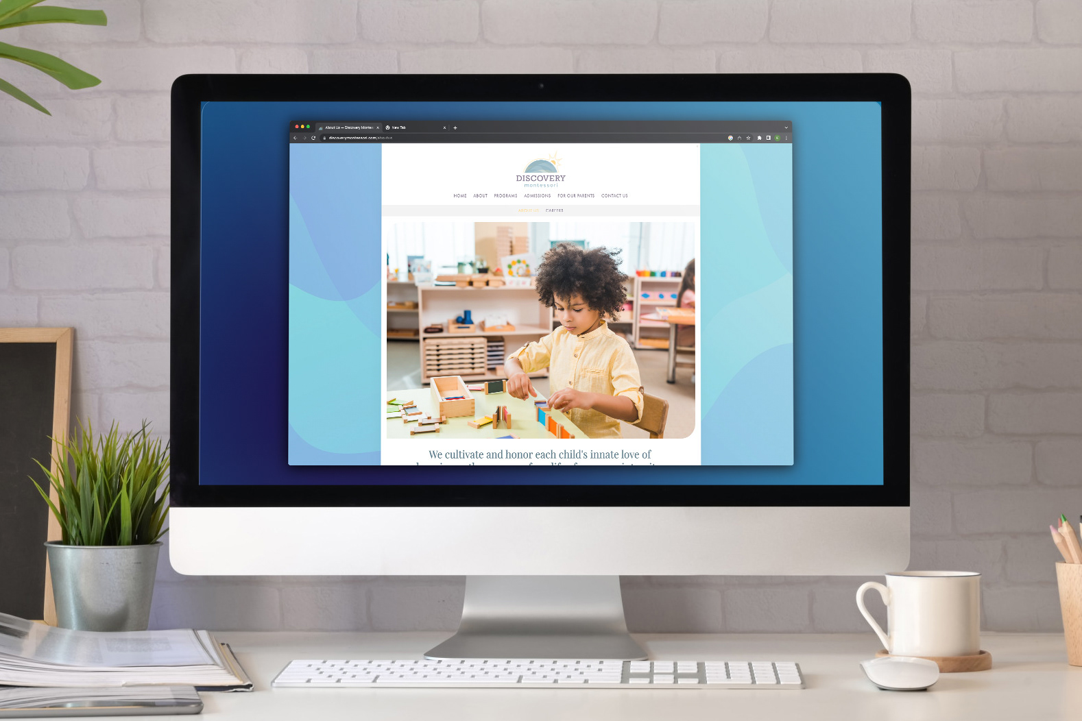 The final logo blended the abstract shapes into the half globe and a sunburst was added, symbolizing the bright ideas and futures of the children at the school.